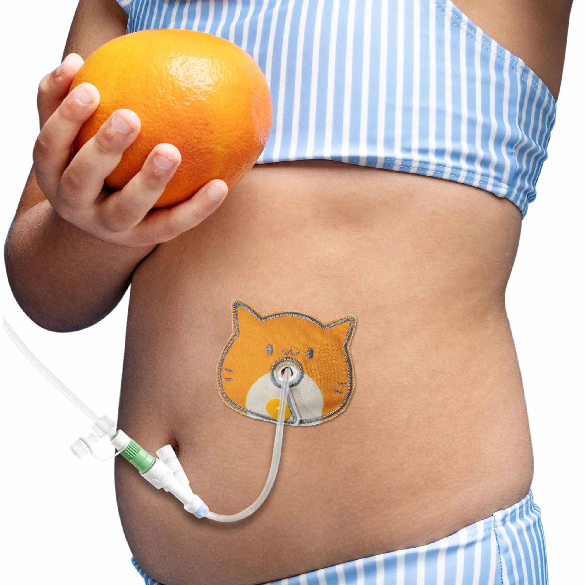 Dette produkt er et ikke-invasivt tilbehør beregnet til at støtte komfort, organisering og hudbeskyttelse omkring en ernæringssonde hos børn (gastrostomi / jejunostomi). Det erstatter ikke et medicinsk udstyr og har ingen terapeutisk funktion.