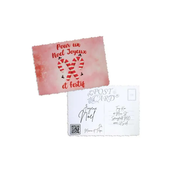 Disse postkort er designet med omtanke til den festlige periode og er dejligt enkle at bruge. De er klar til at blive gjort personlige og indbyder til, at du skriver din egen festlige besked. Den tomme plads venter på dine inderlige noter, navne eller en personlig hilsen, der afspejler din glæde og dit kammeratskab.